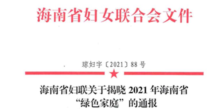 【喜报】明佳集团罗福英家庭被评为2021年海南省“绿色家庭”