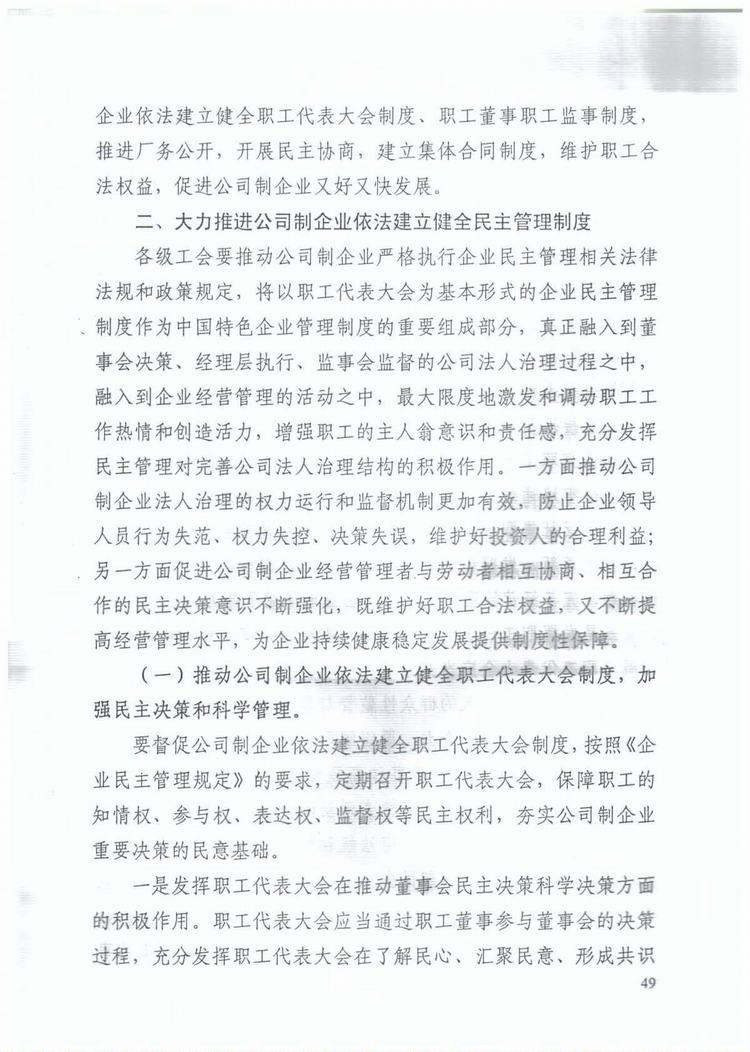 中华全国总工会关于加强公司制企业民主管理工作的意见(总工发[2012]78号)WORD版